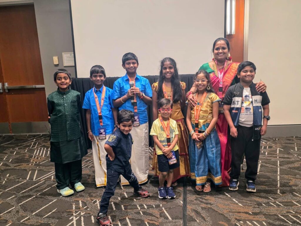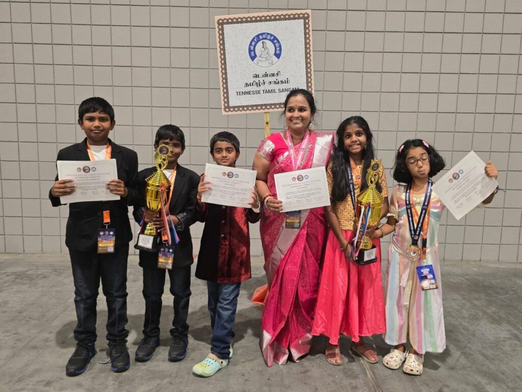 The students continued to shine at numerous cultural and religious celebrations, including Diwali, Iyyappa Pooja, New Year, and Pongal programs. They performed for prominent organizations such as the Tennessee Tamil Sangam, Tennessee Kannada Koota, Tennessee Telugu Association, and Marathi Mandal, as well as at revered temples including the Tennessee Ganesh Temple and the Shree Sai Baba Temple. The children’s performances, in particular, were noted for their maturity, clarity, and emotive strength.
