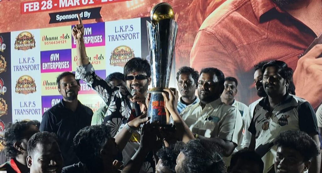 செங்குன்றம், பாடியநல்லூரில் நடைபெற்ற Red Hawks கிரிக்கெட் போட்டியில் வெற்றி பெற்ற அணிக்கு Legend Saravanan ரசிகர் மன்றத்தின் அகில இந்திய செயலாளர் பி. சுதாகர் தலைமையில் இன்று கோப்பையும் சிறப்பு பரிசுகளும் வழங்கப்பட்டன. வெற்றி பெற்ற வீரர்களை பாராட்டி, அவர்களுக்கு கோப்பை மற்றும் பரிசுகளை வழங்கி உற்சாகப்படுத்தினார்.