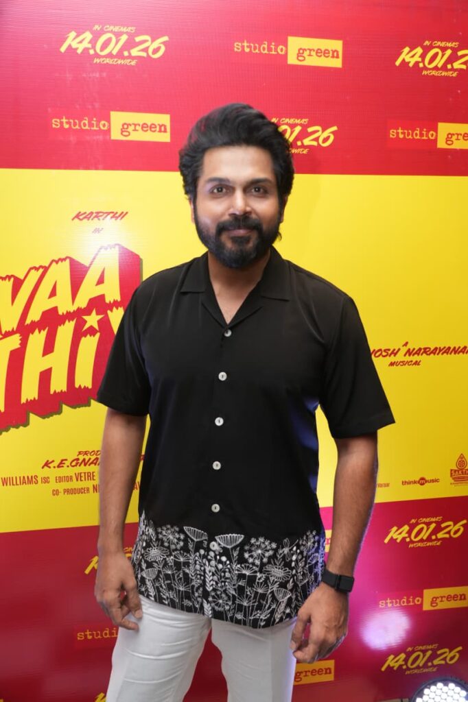 எம் ஜி ஆர் பற்றி பேச எனக்குத் தகுதியில்லை, பரம ரசிகர் சத்தியராஜ் சார் முன் எம் ஜி ஆர் பற்றி எதாவது தகவல் தப்பாகக் கூறி விடுவோம் என பயமாக உள்ளது. அவர் அவ்வளவு தீவிரமான ரசிகர். கார்த்திக்கின் சிரிப்பு எனக்கு ரொம்ப பிடிக்கும். ஒரு ஐகானிக் இமேஜை மீண்டும் திரையில் கொண்டு வருவது மிக கடினமான விசயம். எம் ஜி ஆராக நடிக்க கார்த்தி நிறைய ஹோம் ஒர்க் பண்ணியிருக்கிறார். அவரது பாடி லாங்குவேஜு எல்லாம் மிகவும் நன்றாக இருக்கிறது. அவருக்கு என் வாழ்த்துக்கள். முழு அர்ப்பணிப்புடன் உண்மையாக உழைத்தால் தான் அந்த மாதிரி விஷயங்கள்லாம் வெளிவரும். கார்த்தி மிகச்சிறப்பாகச் செய்துள்ளார். கிருத்தி ஷெட்டி வெல்கம் டு தமிழ் சினிமா. நான் ஆனந்தராஜனோட கிளாஸ்மேட் ஃபிலிம் இனஸ்டிட்யூட்டில். அவருடன் நடித்தது மகிழ்ச்சி. இயக்குநர் நலன் அவரது காதலும் கடந்து போகும் படம் போலவே, இந்த படத்திலேயே எனக்கு ஒரு நல்ல ரோல் கொடுத்திருக்கார். அவருக்கு ரொம்ப நன்றி. இந்தப்படம் வெளிவருதற்குத் தயாரிப்பாளர் ஞானவேல் சார் மற்ற எல்லா நடிகர்களும் ஆர்டிஸ்ட் எல்லாருமே சேர்ந்து எவ்வளவோ கஷ்டப்பட்டிருக்கிறார்கள் என்பது தெரியும். மிகக்கஷ்டபட்டு இந்த படத்தைப் பொங்கலுக்குக் கொண்டு வந்துவிட்டார்கள். நிச்சயமாகச் சத்தியமாக இந்த படம் மிகப்பெரிய வெற்றி பெறும்.
