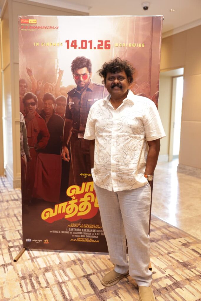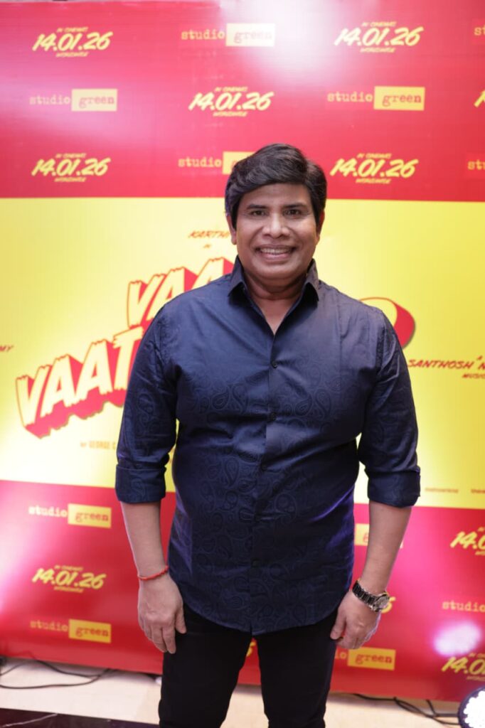 எம் ஜி ஆர் பற்றிப் பேசினால் அது தனியா ஒரு கதையாக போய் வ்டும். இந்த படத்தோட தயாரிப்பாளர் தம்பி ஞானவேல் ராஜா பற்றி ஒரு விஷயம் சொல்லவேண்டும். அவருடைய அப்பா ஒரு தீவிரமான எம் ஜி ஆர் ரசிகர். அவர் 110 தடவை நாட்டோடி மன்னன் படம் பார்த்ததாக சொன்னார். அவ்வளவு தீவிர ரசிகர். அப்படிபட்ட தயாரிப்பாளருக்கு அவர் இந்தப்படம் அமைந்தது மகிழ்ச்சி. கார்த்திக்கு முதல் படமே மிக சவாலான படம். வெளிநாட்டில் படிச்சிட்டு வந்து, அந்த மாதிரி ஒரு கிராமத்துக் கதாபாத்திரம் பண்ணுறது எளிமையானது இல்லை. ஆனால் அதைவிட கஷ்டமான விஷயம் இந்த வாத்தியார் கதாபாத்திரம். ஏனென்றால் இது ஒரு தலைவரின் பெயரோட சம்பந்தப்பட்ட கதாபாத்திரம். ஆனால் அதைத்தாண்டி இந்தப்படத்தில் எம் ஜி ஆர் பாடி லாங்குவேஜை கொண்டு வந்து அசத்திவிட்டார். கிருத்தி ஷெட்டி, ஷில்பா, தம்பி ஆனந்த்ராஜ், தம்பி சுந்தர் எல்லோரும் சிறப்பாக நடித்துள்ளனர். ஐம்பது வருடம் முன் கோவையிலிருந்து வந்த போது, பல் பெரிதாக இருக்கிறது என சிவக்குமார் அண்ணன் சிபாரிசில் டாக்டரிடம் சென்று பல்லைக் குறைத்தேன். ஆனால் நலன் இப்படத்தில் உங்கள் கதாப்பாத்திரம் வித்தியாசமாக வேண்டுமென பல் வைக்க வைத்து விட்டார். இப்படத்தில் நான் வில்லனாக நடித்துள்ளேன். எம் ஜி ஆரின் பொங்கல் படம் படம் போல இந்தப் பொங்கலுக்கு வா வாத்தியார் வருகிறது அனைவரும் கொண்டாடுங்கள் நன்றி.